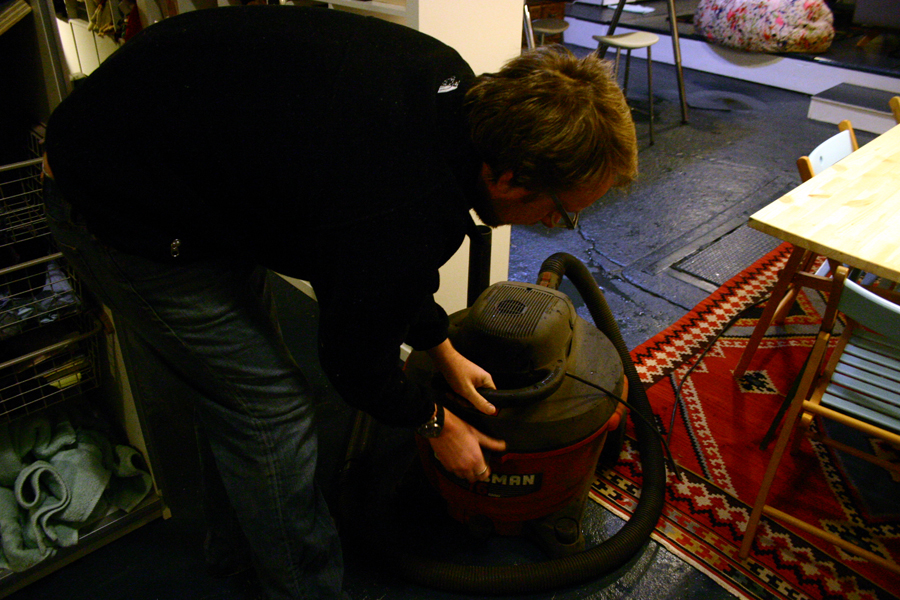 Then one fateful day, there was a huge snow storm and the roof was covered. We woke up the next morning and Jeff put his hand to the floor to get his phone to check the time and it was floating in water. My brain started to function in that sluggish morning way, and I began to realize that our bed was surrounded by 3 inches of water. The water was coming from the pipe hole in the floor and it was no longer draining into that drain in our bedroom. It wasn’t going anywhere. As the snow melted on the roof, more water flowed into the apartment because of a blockage in the pipe. Jeff spent the whole day away from work, waiting for the plumber to come, sucking water out in a shop vac as it steadily came up from the pipe. They finally came, they fixed it, and everything has been dandy until today.