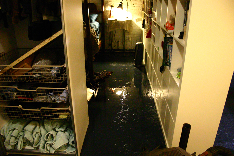 I’ve mentioned floods several times in these posts, but haven’t gone into specifics about any them, so let me quickly explain before I talk about the big one. We have a drain on our roof that sends rain water from up there, down through a large pipe that is inside the apartment on one wall. That water goes into our main drain along with all the sink or shower or toilet water. There are also two holes in the floor, one is an old pipe opening and one is a drain in the bedroom area. Most of the floods in the beginning involved one of the toilets overflowing in the back of the apartment, and draining all the way into that area in the bedroom because there is a slight slant to the floor. This was a lot of water because it went really far, but at least it went somewhere (into that drain). We had Roto-Rooter come a few separate times to snake the drain in the floor and everything seemed fine for a few days or weeks.