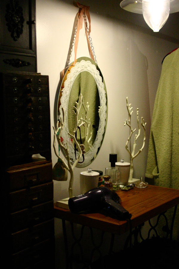My new favorite thing from Ikea: A vanity mirror printed with a lace border! So cute and so cheap!