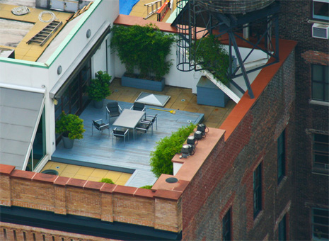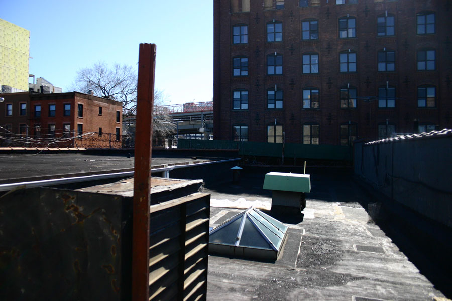The one feature of our garage loft that really sold us was the huge 1400 square foot rooftop all to ourselves.   You all know about our many leaks and the process of getting the whole roof redone, and that is the source of our next big issue: The Rooftop Garden.   We have been told by our landlord that if we put anything on the roof that causes or eventually causes another leak by puncturing the tar paper, we will have to pay for the repair.  The roofers told us to lay down 3/4″ plywood in any area we plan to use up there, and since that is beyond our budget, we can only really work with an area about 20′ x 16′ towards the front of the building where the view of the bridge is best.