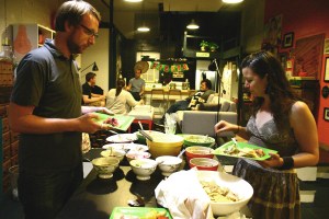 For re-heating or cooking things that MUST be done right before serving, write out your schedule backwards in 30 minute increments from about 30 minutes after your party has started. That way, you can get out of the kitchen to eat and enjoy! For example, here’s how we did it: