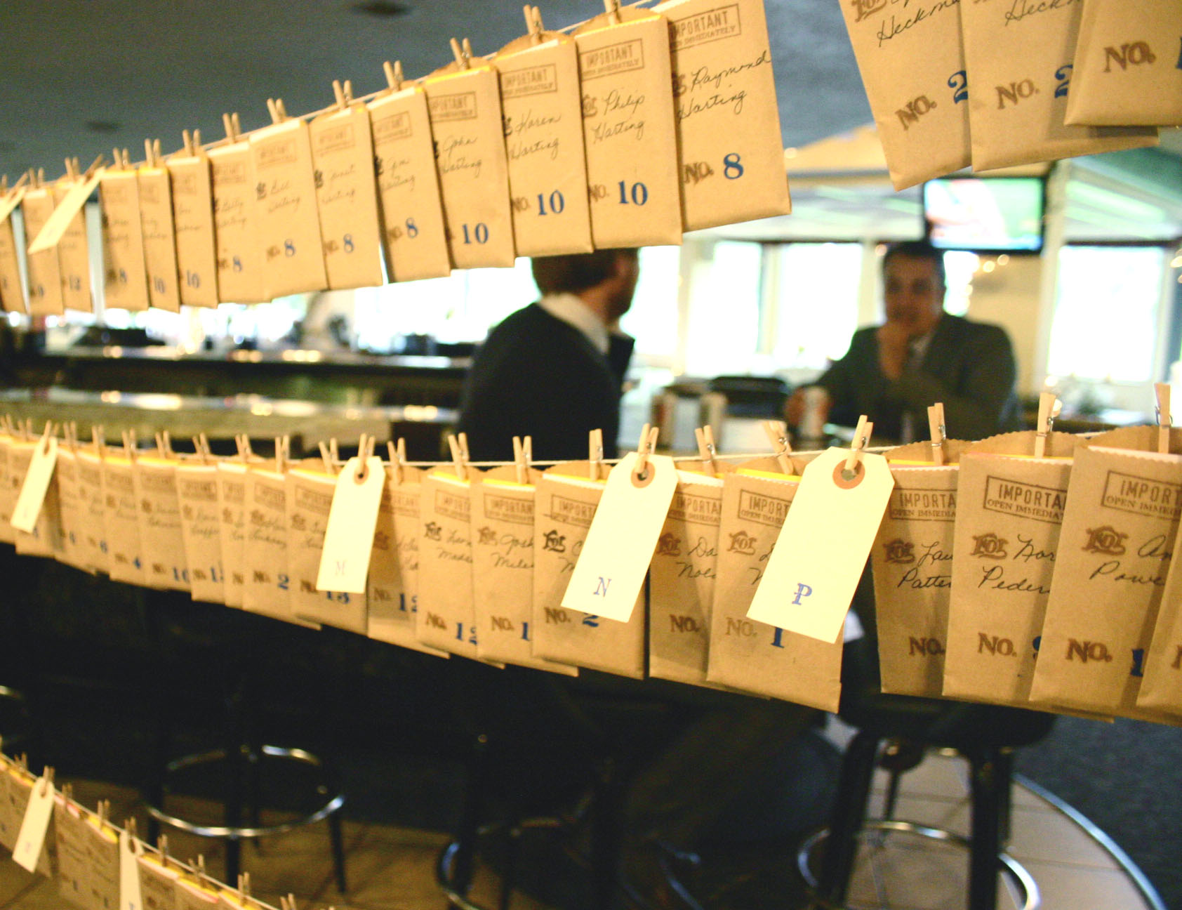 Monopoly bar money was tucked sweetly into envelopes with each guests name and table assignment.