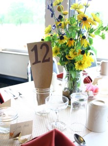 The bride and groom made a lot of the stuff themselves and I always recommend that people do this to save money.  They had some friends over for a craft day and stamped, cut, sorted and labeled.   If you host a few days like that and start planning early in your engagement, it won’t be stressful and most importantly it will be cheap!