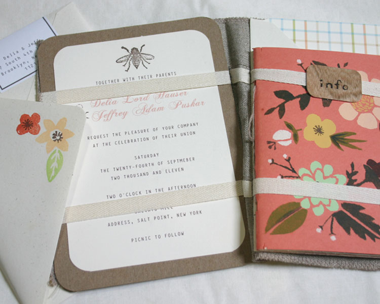 Our invitation combines vintage patterns and prints to evoke a casual elegance, perfect for our picnic wedding!