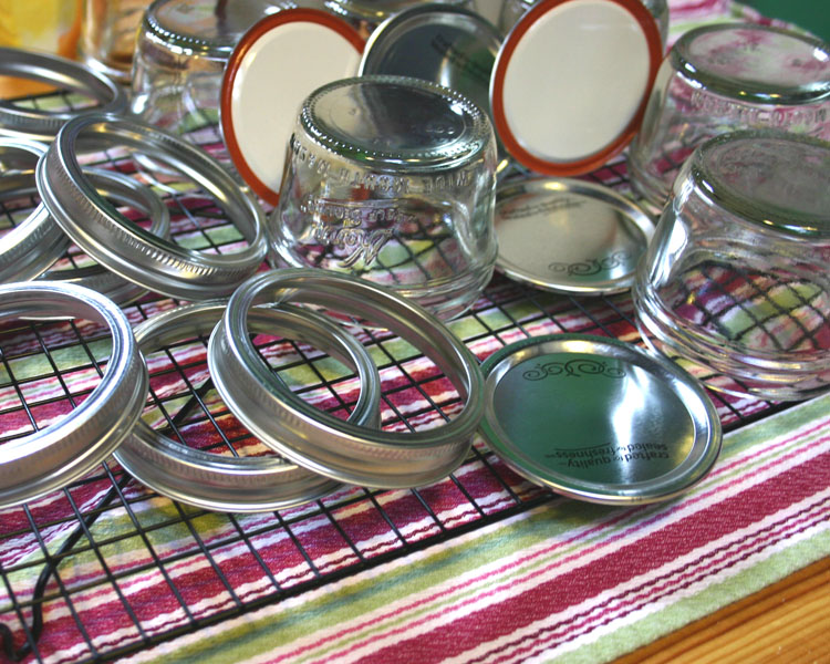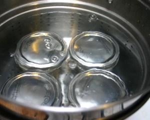- large pot with a pasta strainer in it, or a rack set in the bottom (so the jars don’t touch the bottom of the pot when you are boiling them)