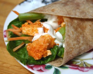 3. Thanks ladies! The tofu wrap is seriously GREAT! I realized as I was eating it that I don’t actually NEED the chicken part of the “wing experience”…what I love is the sauce combined with the blue cheese and the crunch of carrots and celery. YUM.
