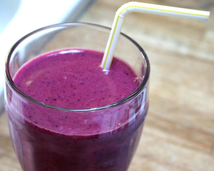 Blend everything in a blender until smooth and divide between two glasses. Drink!