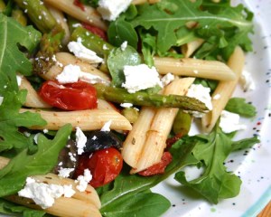 - Roasted Asparagus and Tomato Pasta Salad with Arugula