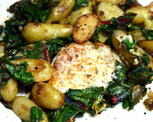 - Eggs with Fingerling Potato and Swiss Chard Hash