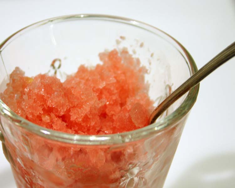 After the watermelon has been in the freezer for about an hour, pull it out and scrape with a fork.  Continue to do this until you have created watermelon snow.  If its still a little wet, pop it back in for 30 minutes and repeat the scraping and fluffing.  Serve in bowls!
