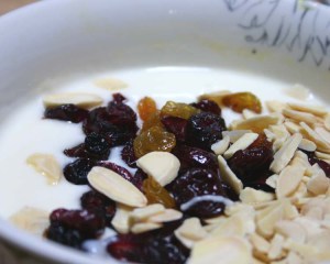 Juice one half of the orange into each bowl with the yogurt and whisk together. Top with almonds and berries- the amount is up to you. Just be sure that you have enough of each to get you through the whole week. Eat!
