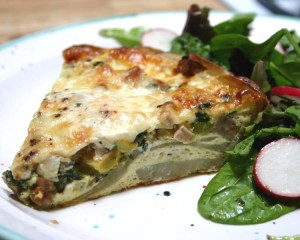 - 2 wedges of the quiche, reheated in the oven or microwave