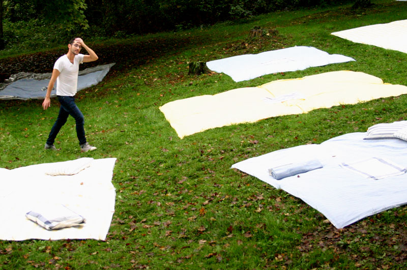 Left: A DIY bride on her wedding day. Please note: She looks pretty terrible and is working hard, not sitting on a lily pad. Right: Taking a quick nap while setting the pillows out on the picnic blankets!