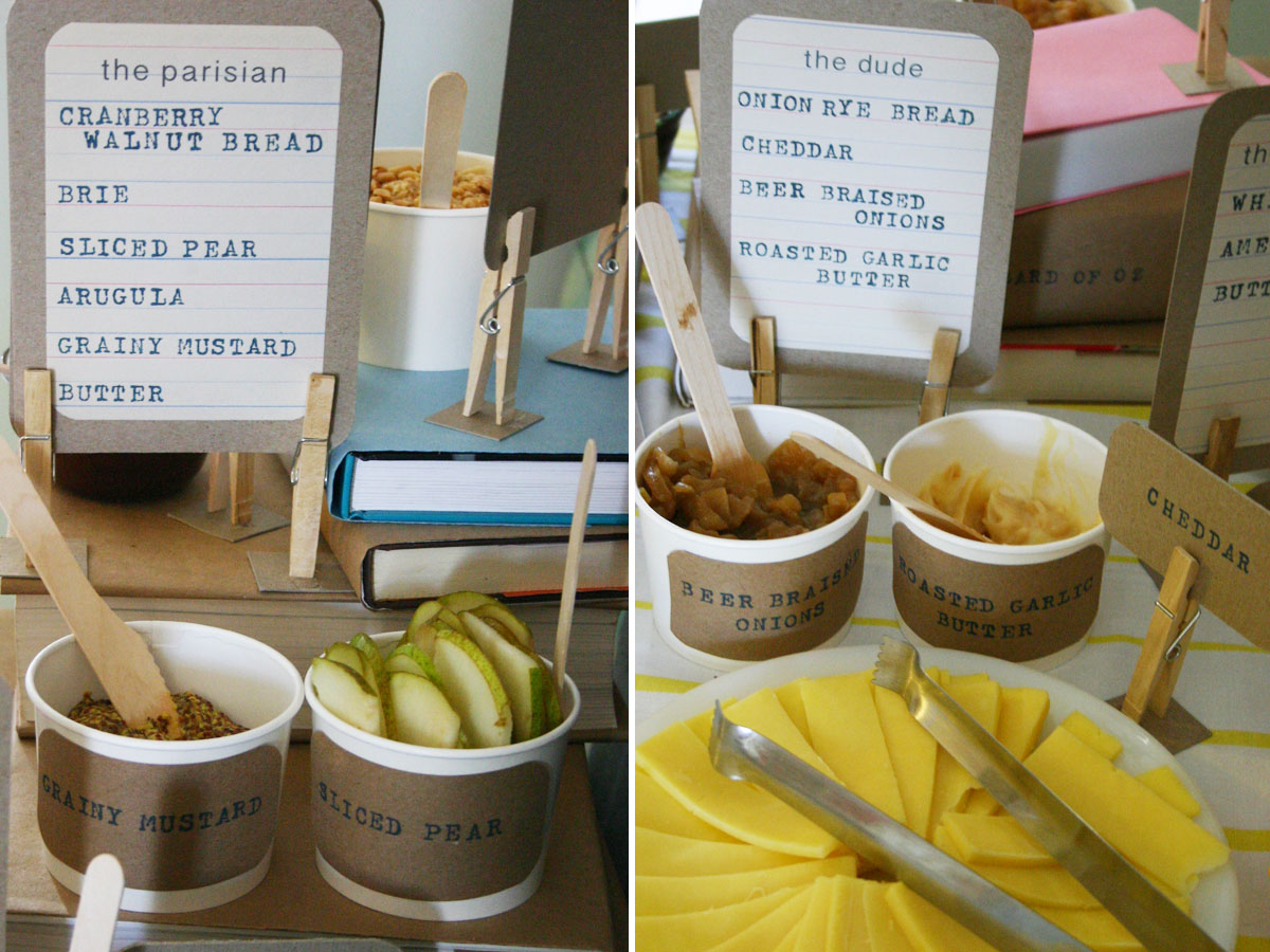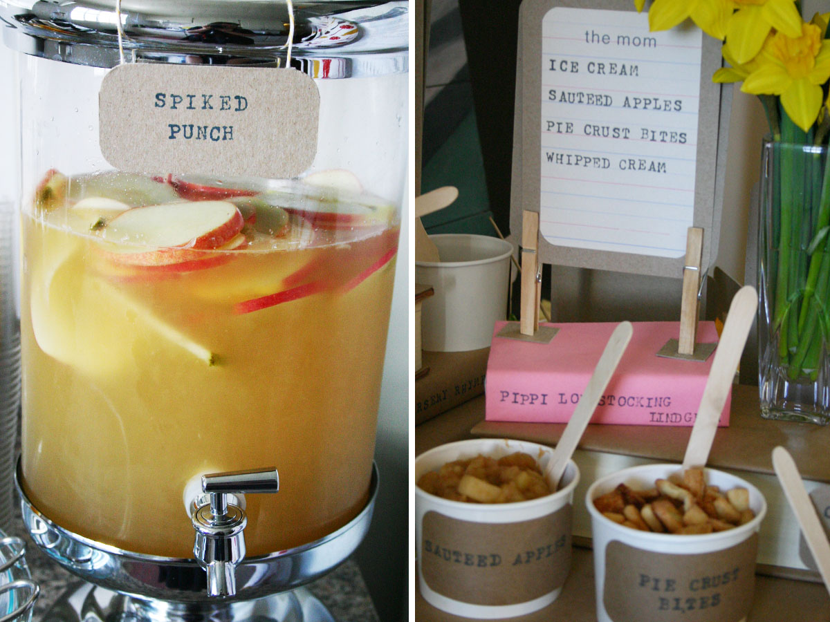 - Food/Drinks – Grilled Cheese Bar with Soup, Ice Cream Sundae Bar, Apple Crisp Spiked Punch, Natural Citrus Sodas
