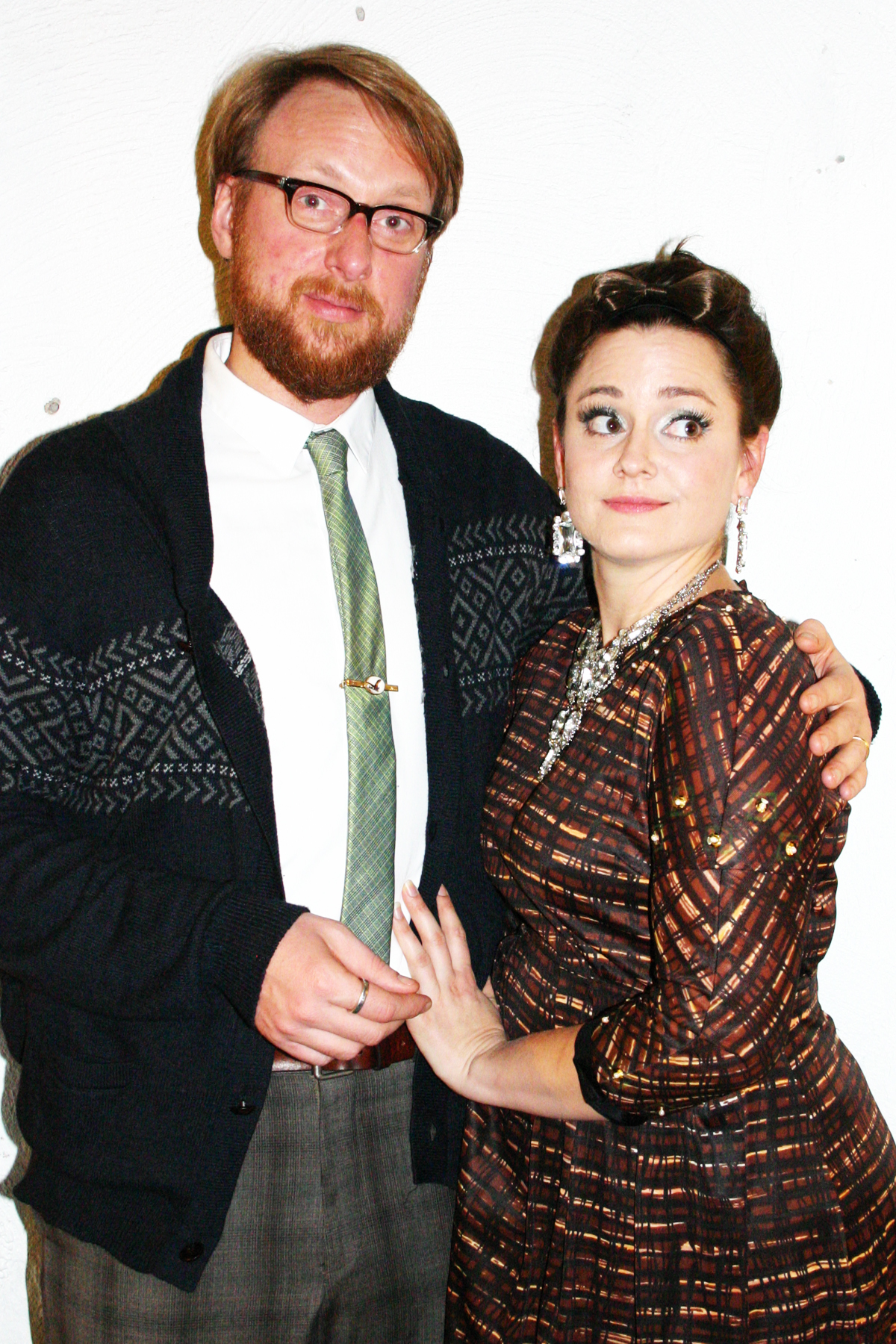 Our party had a much looser theme than last year, but we encouraged people to wear “vintage holiday” attire….any decade would do.  Jeff and I channeled the 60’s, mostly because it was the only vintage maternity dress I could find!   Here’s what we served: