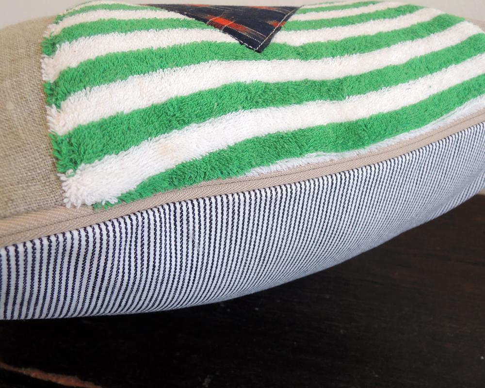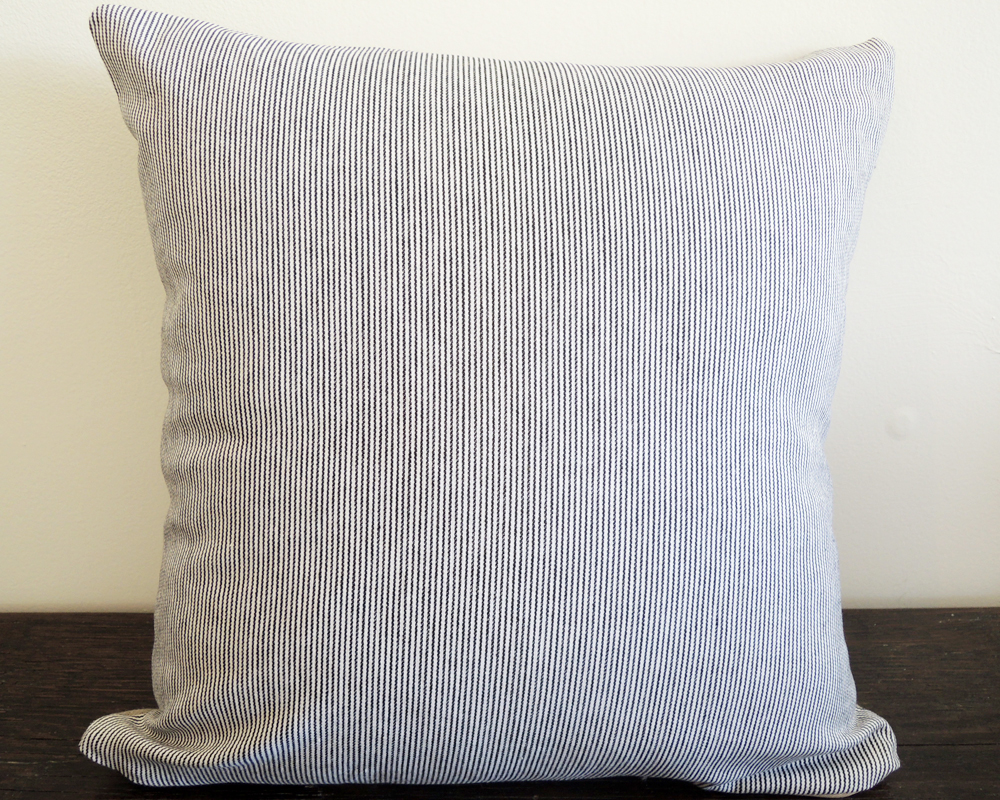 This sweet little throw pillow features a smartly dressed chambray raccoon and hand embroidery on natural linen. The back is a finely striped black and white denim with a zipper closure. Pillow insert is eco-poly fill.