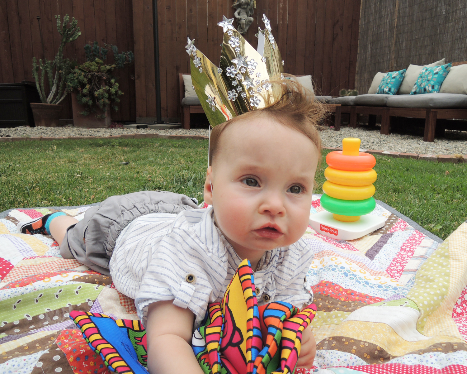 For George’s first birthday, we decided to go with a “real prince” theme since we joke that the royal family is always stealing our thunder from their engagement announcement to their wedding to their choice of baby names. (We had it first!) I truly believe that the first birthday is really for the parents to celebrate making it through that first year, so my advice is to keep it as simple as possible. We had crowns, bubbles, a cake, hotdogs and hamburgers….and that was PERFECT.
