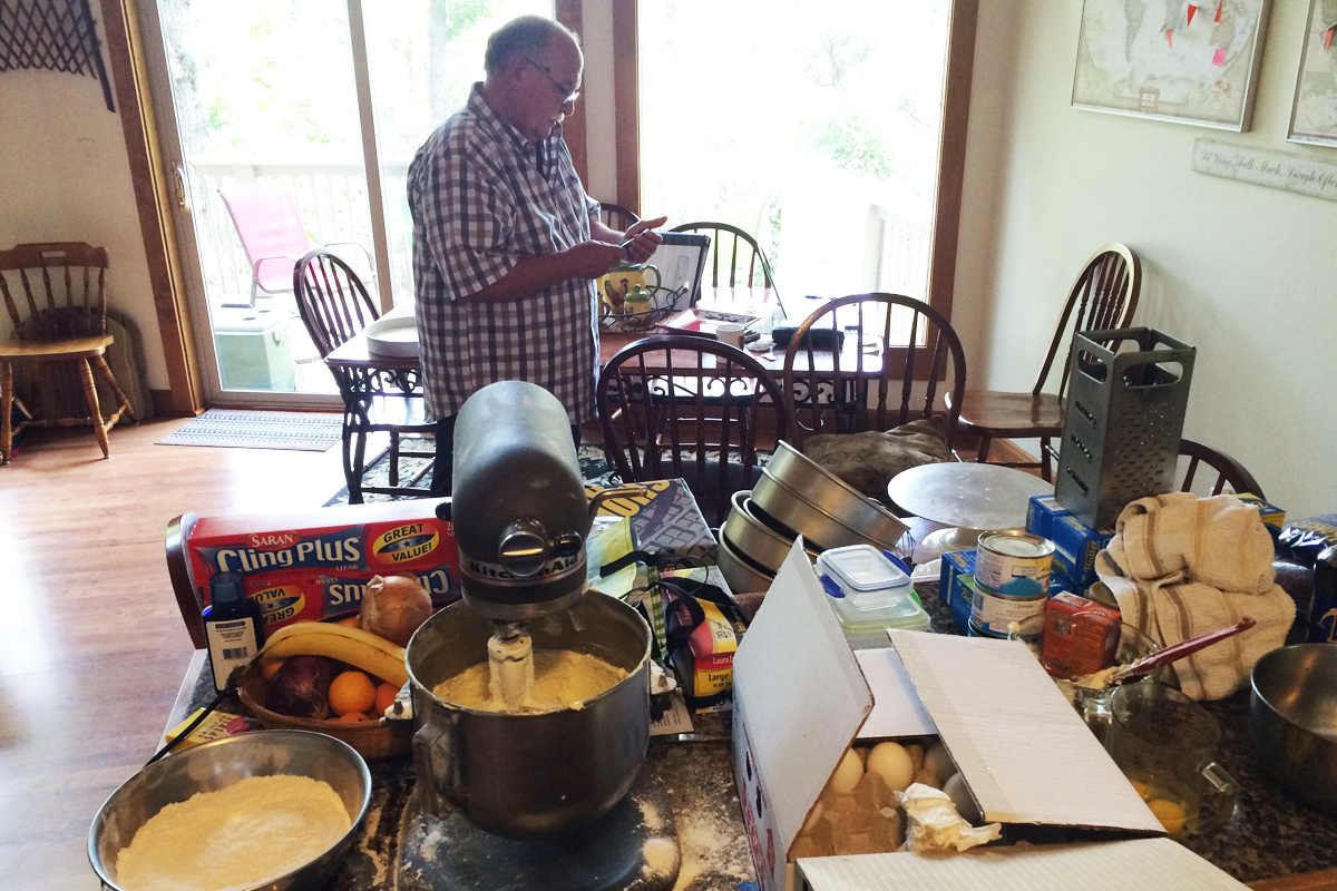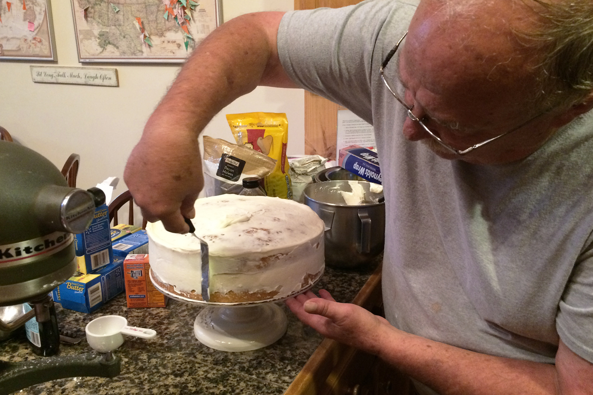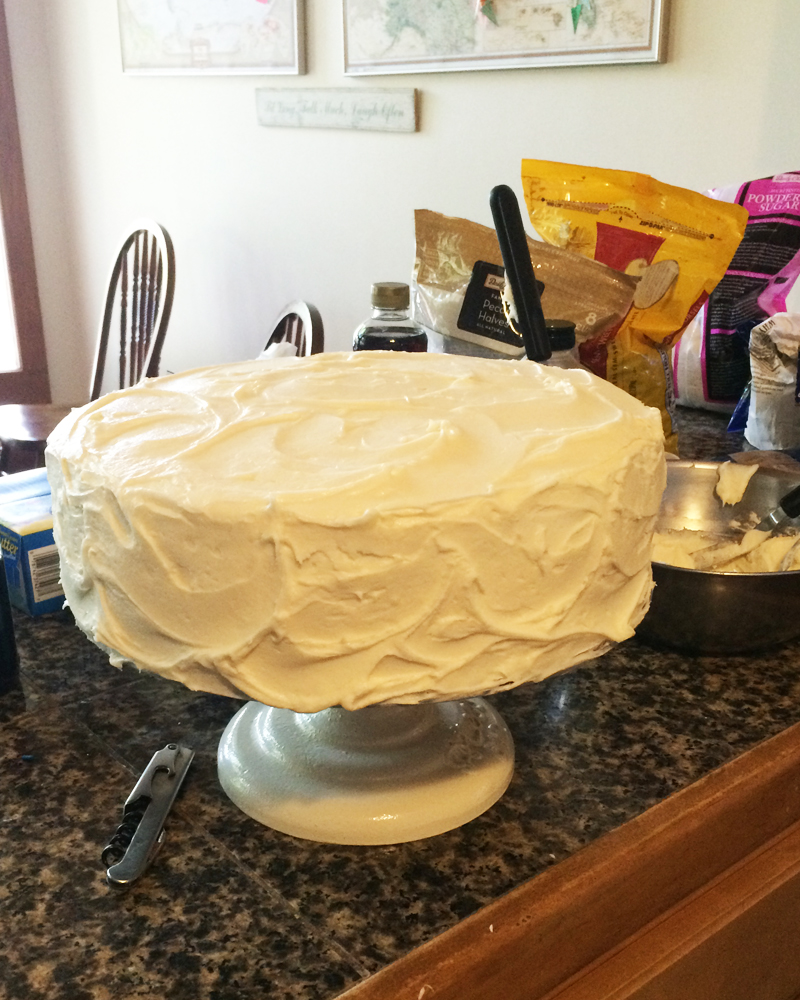 Giant cakes in a tiny kitchen. My dad is a pro…but it’s really hard to keep such a tiny work space tidy!
